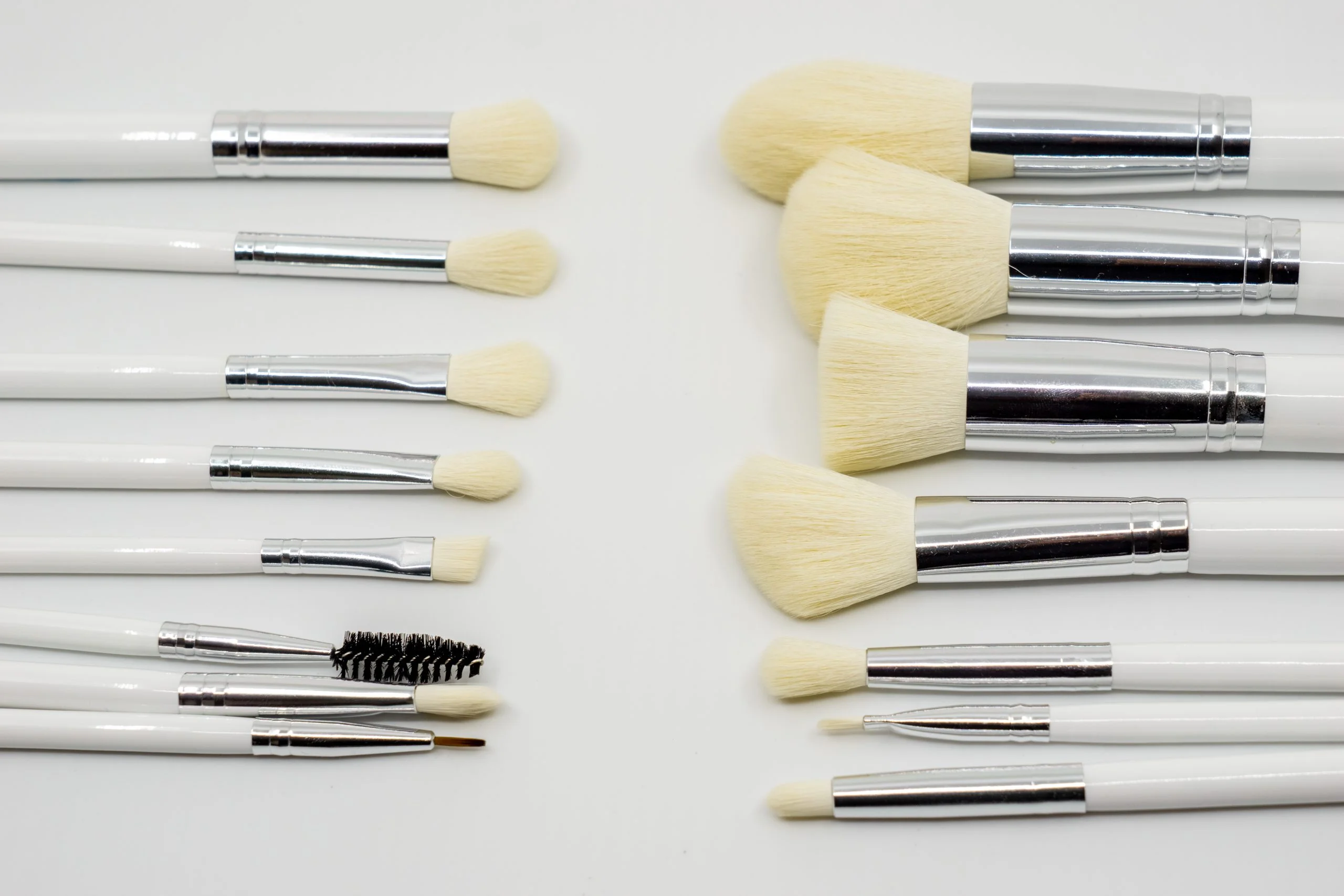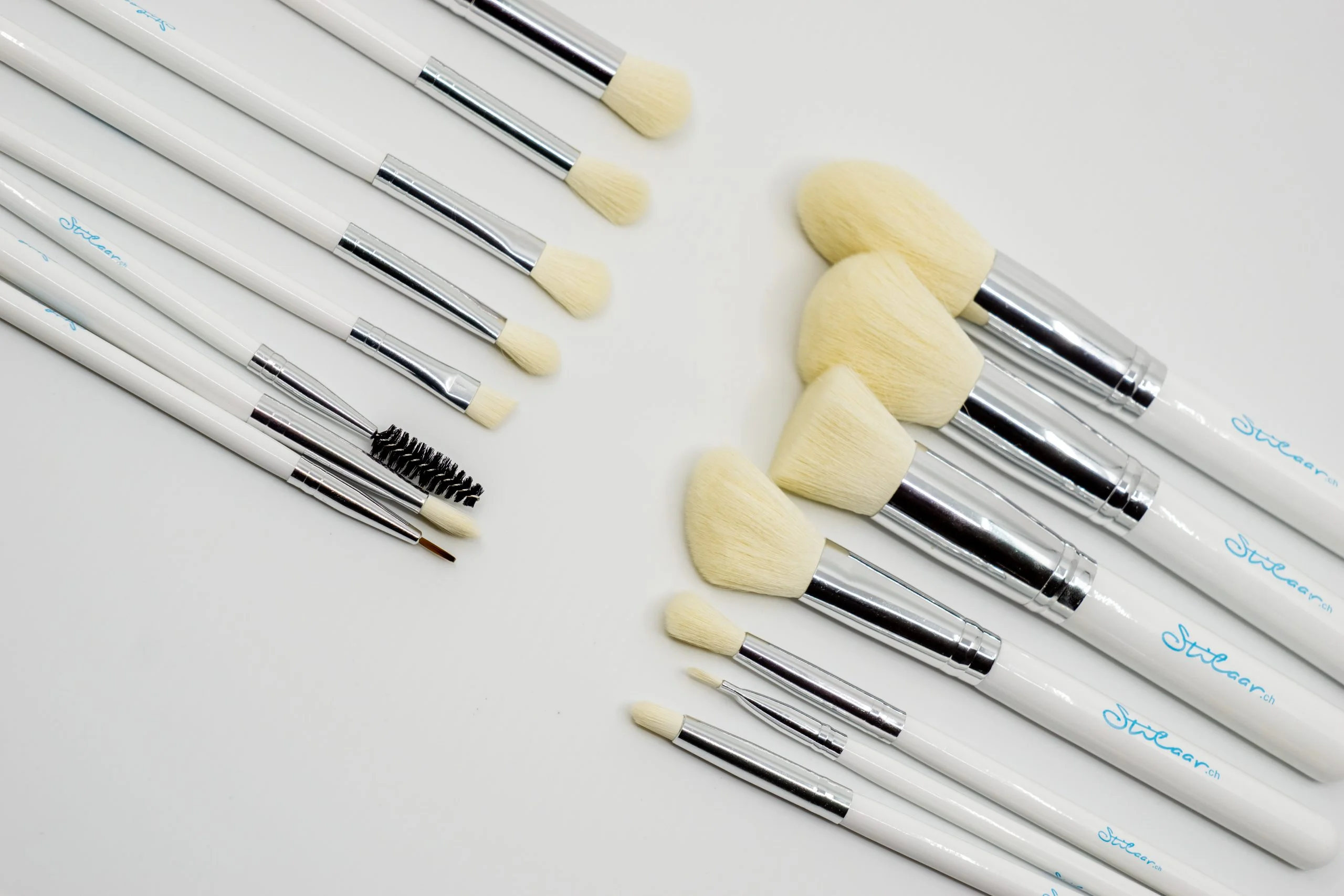 Dieses Set enthält diverse Pinsel die sich gut zum Auftragen zum Auftragen von Gesichtspuder an schmaleren Hautpartien und im Augenbereich eignen, sowie für die großflächigere Applikation von Lidschatten.