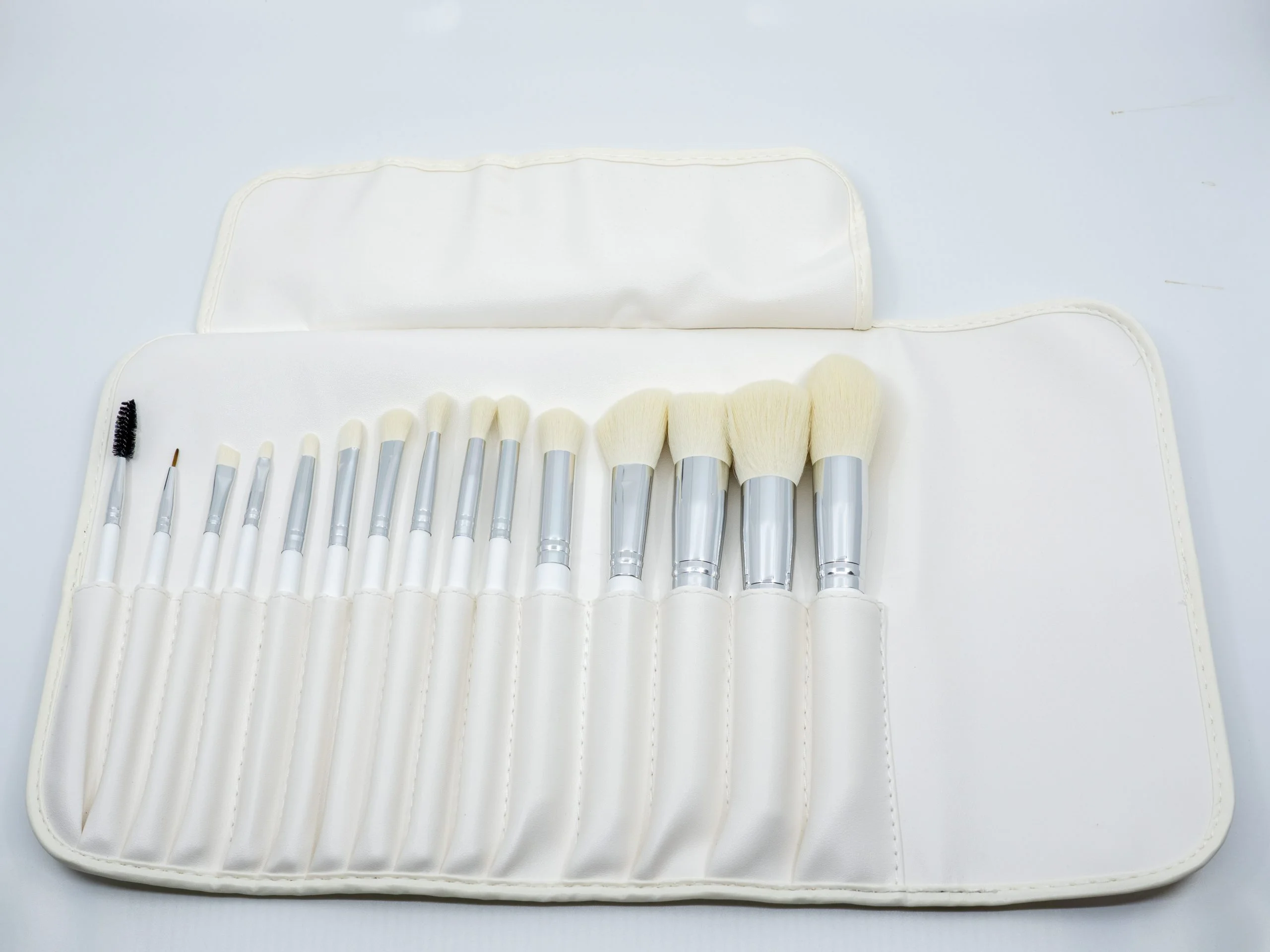 Das Pinselset wird in einer edlen PU Ledertasche geliefert. Jeder Pinsel ist zusätzlich mit einer Plastikhülle geschützt.